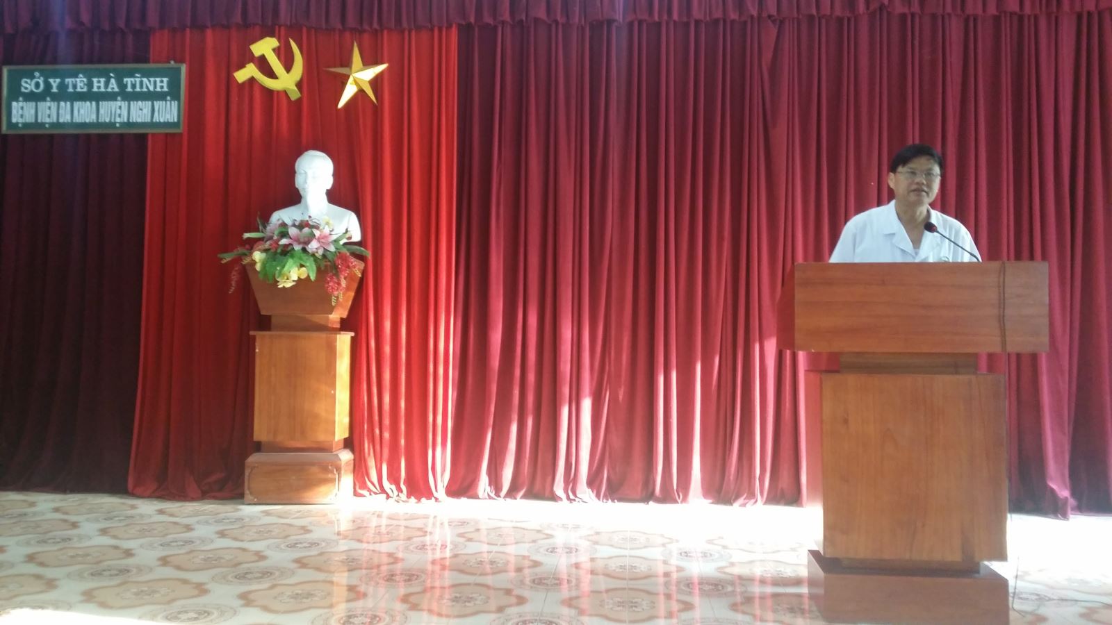 Đồng chí Hà Thanh Sơn - Giám đốc bệnh viện phát biểu đánh giá hoạt động tháng3 và triển khai kế hoạch hoạt động tháng 4/2018