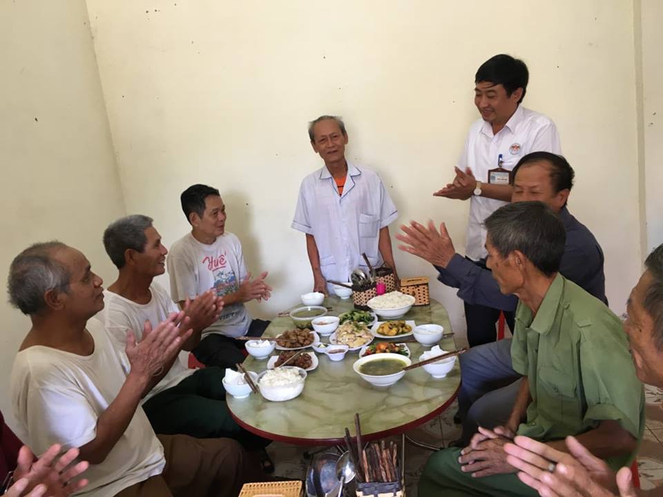 Bác Thanh cũng như các người bệnh khác được tham gia bữa cơm đầy đủ cac món ngon, khiến bác rất cảm động và nói đôi lời cảm ơn: “Cơm ngon lắm, cảm ơn các cháu đã quan tâm tới những thương binh, bệnh binh như chúng tôi, khiến chúng tôi cảm thấy được niềm an ủi và động viên rất lớn”
