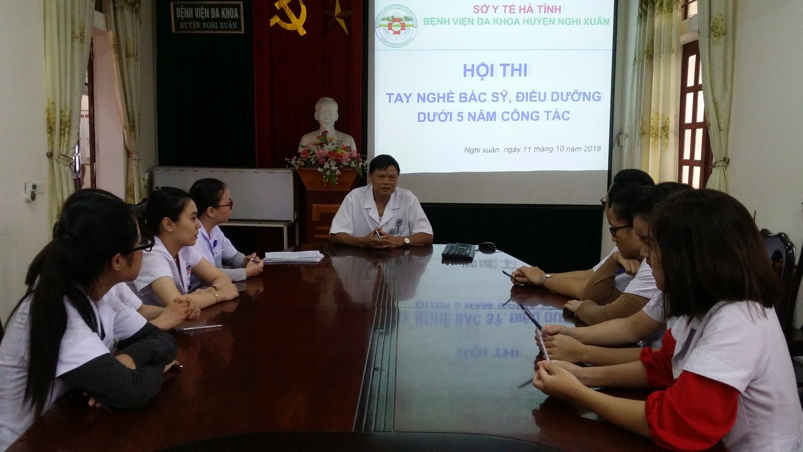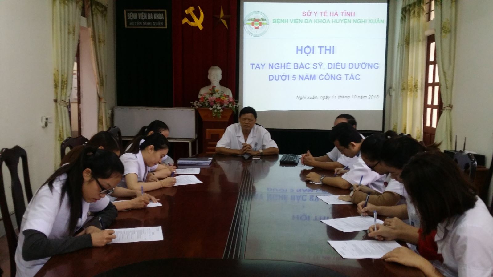 Với mục tiêu là phát động và duy trì phong trào thi đua học tập nâng cao tay nghề trong CBCNV Bệnh viện; Đánh giá năng lực chuyên môn nhân viên, góp phần bồi dưỡng kiến thức, chuyên môn nghề nghiệp trong điều trị, chăm sóc người bệnh; Rèn luyện kỹ năng trong thực hiện các quy trình kỹ thuật chuyên môn; Sử dụng kết quả kiểm tra tay nghề, chuyên môn làm cơ sở cho việc xây dựng kế hoạch đào tạo, luân chuyển cán bộ. Bệnh viện đa khoa huyện Nghi xuân đã triển khai thi tay nghề chuyên môn cho 12 đối tượng là Bác sỹ, cử nhân Điều dưỡng, Hộ sinh trong toàn đơn vị.