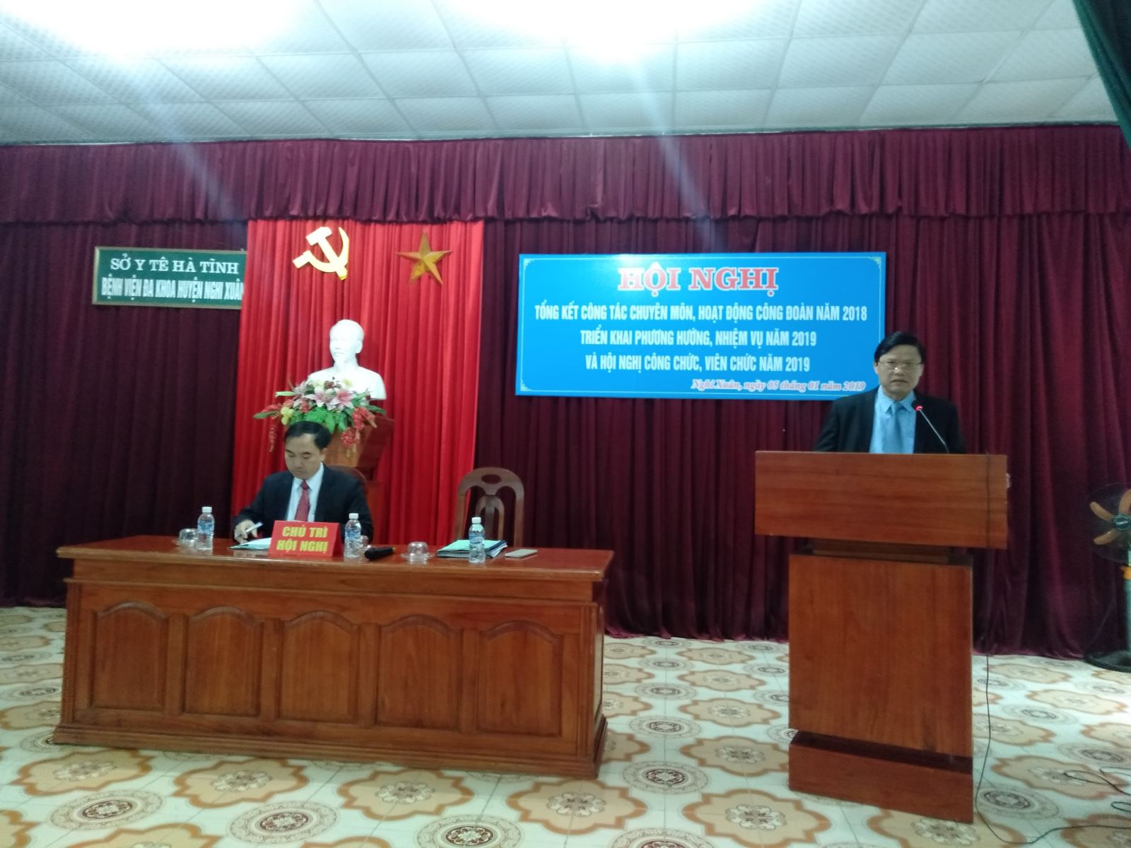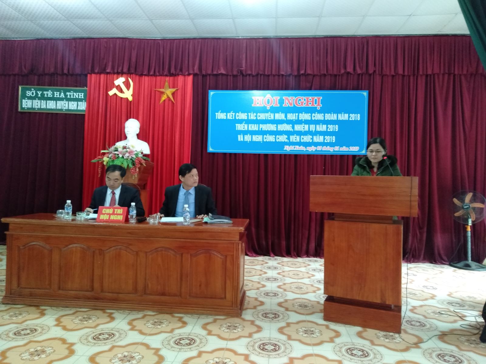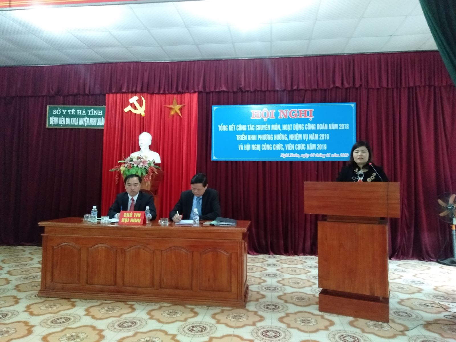 Tại Hội nghị, Bác sỹ CKI. Hoàng Đình Ngọc - Phó Giám đốc Bệnh viện đã trình bày Báo cáo tổng kết năm 2018 và phương hướng, nhiệm vụ năm 2019. Đồng chí Lê Viết Hùng trình bày Báo cáo tổng kết hoạt động công đoàn năm 2018 và phương hướng nhiệm vụ năm 2019, và các báo cáo tài chính, báo cáo thực hiện quy chế dân chủ, báo cáo thi đua, báo cáo quy chế chi tiêu nội bộ.