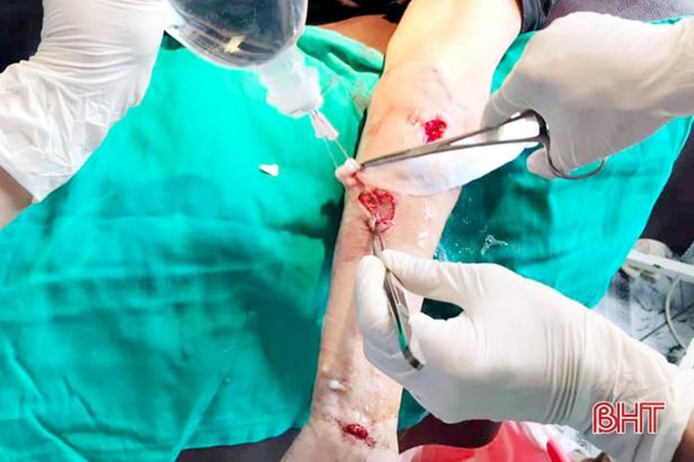 Bệnh nhân đã được các bác sỹ nhanh chóng khâu cầm máu, phục hồi cân cơ, dùng thuốc kháng sinh, thuốc chống phù nề, tiêm phòng uốn ván và nhập Khoa Ngoại tổng hợp điều trị.