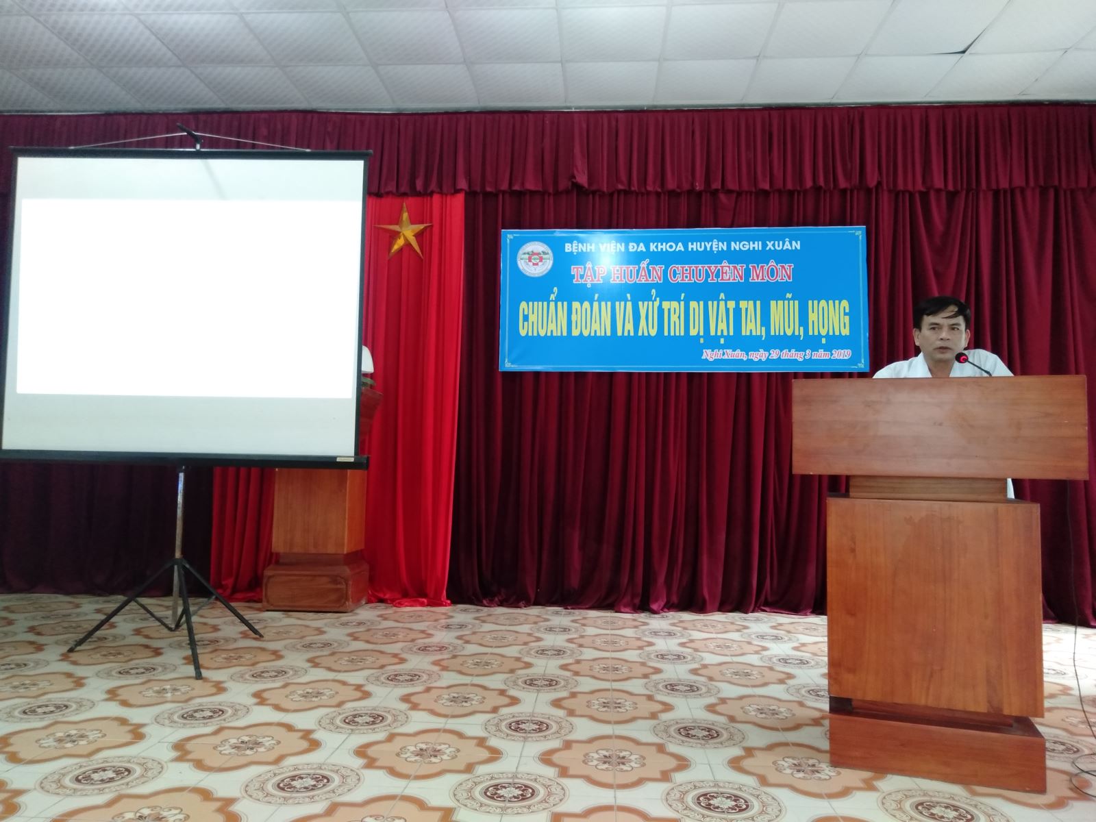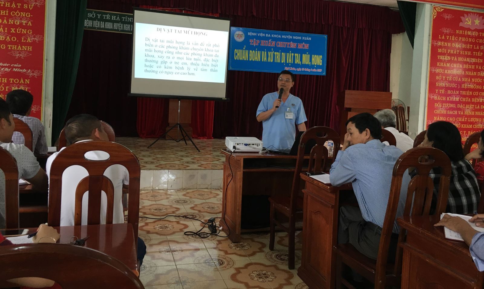 Kết thúc buổi tập huấn chuyên môn, BsCKI Nguyễn Đức Vui - Trưởng phòng KHTH kết luận về tầm quan trọng trong việc Chẩn đoán và xử trí dị vật Tai mũi họng và giải đáp một số vấn đề thắc mắc của các học viên trong việc sơ cấp cứu dị vật TMH nhằm góp phần nâng cao chất lượng khám chữa bệnh và chăm sóc sức khỏe cho nhân dân huyện nhà.
