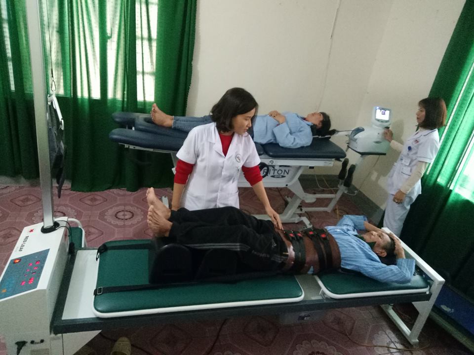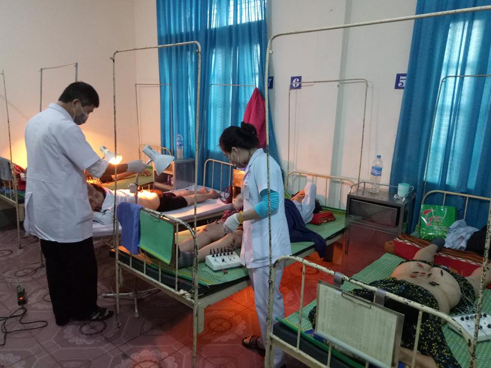 Để điều trị thành công nhiều bệnh trường hợp bệnh nặng do đau thần kinh tọa do thoát vị đĩa đệm, đau vai gáy do thoái hóa đốt sống cổ, di chứng liệt nửa người do tai biến mạch máu não, liệt dây thần kinh 7 ngoại biên....Khoa YHCT- Vật lý trị liệu bệnh viện Nghi Xuân đã phối hợp nhiều kỹ thuật điều trị có hiệu quả như: điện châm, thủy châm, cấy chỉ, chiếu đèn hống ngoại, điện xung, kéo giãn cột sống bằng máy, xoa bóp bấm huyệt, tập vận động....