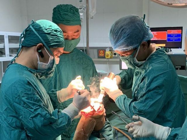 Các bác sĩ Bệnh viện Đa khoa Hà Tĩnh thực hiện thay khớp gối toàn phần cho bệnh nhân