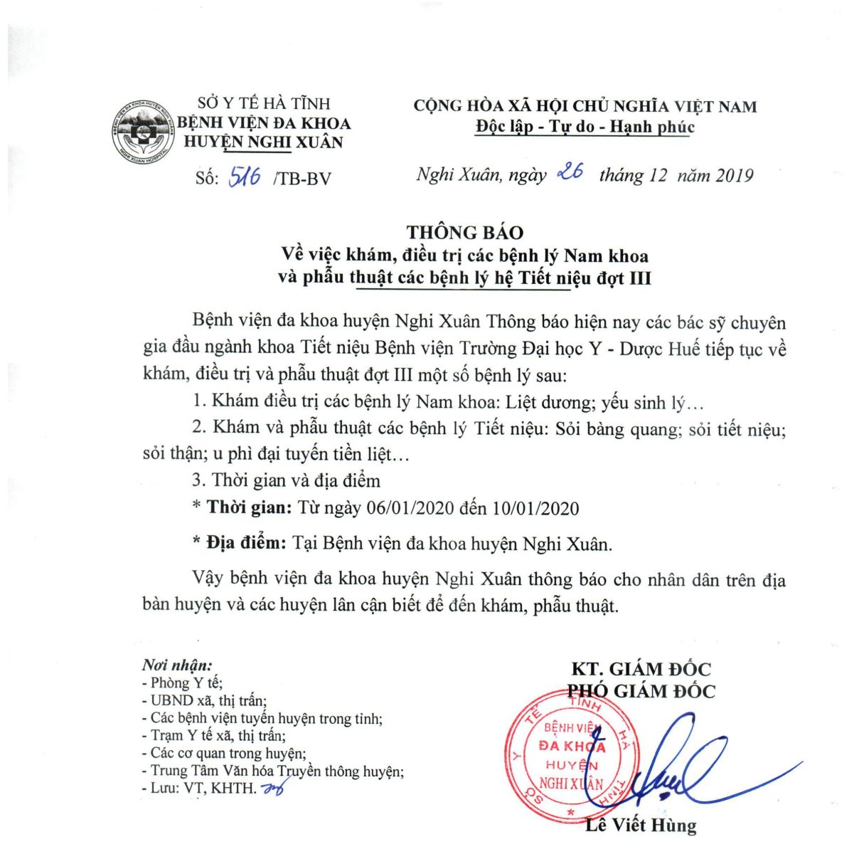 Bệnh viện thông báo đến các đồng nghiệp và tất cả nhân dân trong huyện biết và giới thiệu cho bệnh nhân có các bệnh thuộc chuyên khoa trên đến Bệnh viện đa khoa huyện Nghi Xuân để được khám, tư vấn và điều trị.