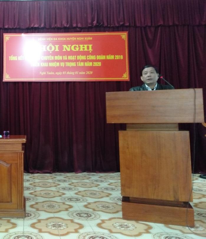 Phát biểu tại Hội nghị, đồng chí Phó Giám đốc – Phụ trách bệnh viện đã ghi nhận những kết quả đạt được của tập thể cán bộ, viên chức, người lao động bệnh viện đa huyện Nghi Xuân trong năm 2019. Những kết quả đó thể hiện tinh thần đoàn kết nỗ lực của tập thể, sự chỉ đạo sâu sát của Ban giám đốc Bệnh viện, đã làm tốt công tác giáo dục chính trị tư tưởng đối với cán bộ y tế, có nhiều sáng kiến trong đổi mới tác phong, lề lối làm việc, phát huy được tinh thần làm chủ, ý thức tự giác của cán bộ, y, bác sỹ. Trong thời gian tới, Bệnh viện cần tiếp tục làm tốt công tác giáo dục chính trị tư tưởng, đề cao trách nhiệm của người đứng đầu các khoa phòng; Tiếp tục thực hiện tốt phương châm: Tất cả vì người bệnh. Ra sức phấn đấu xây dựng bệnh viện: An toàn, thân thiện, bệnh viện vì dân.
