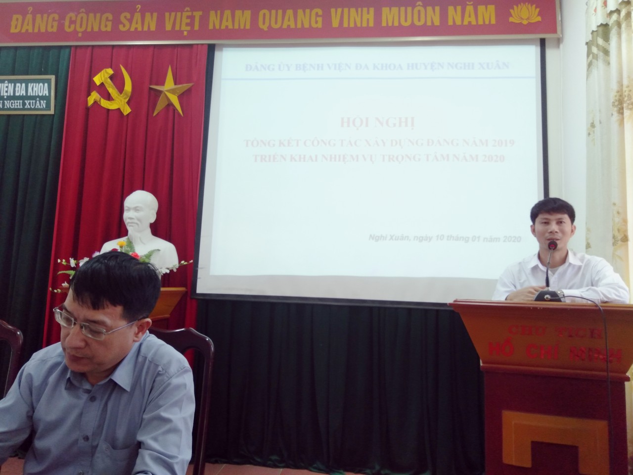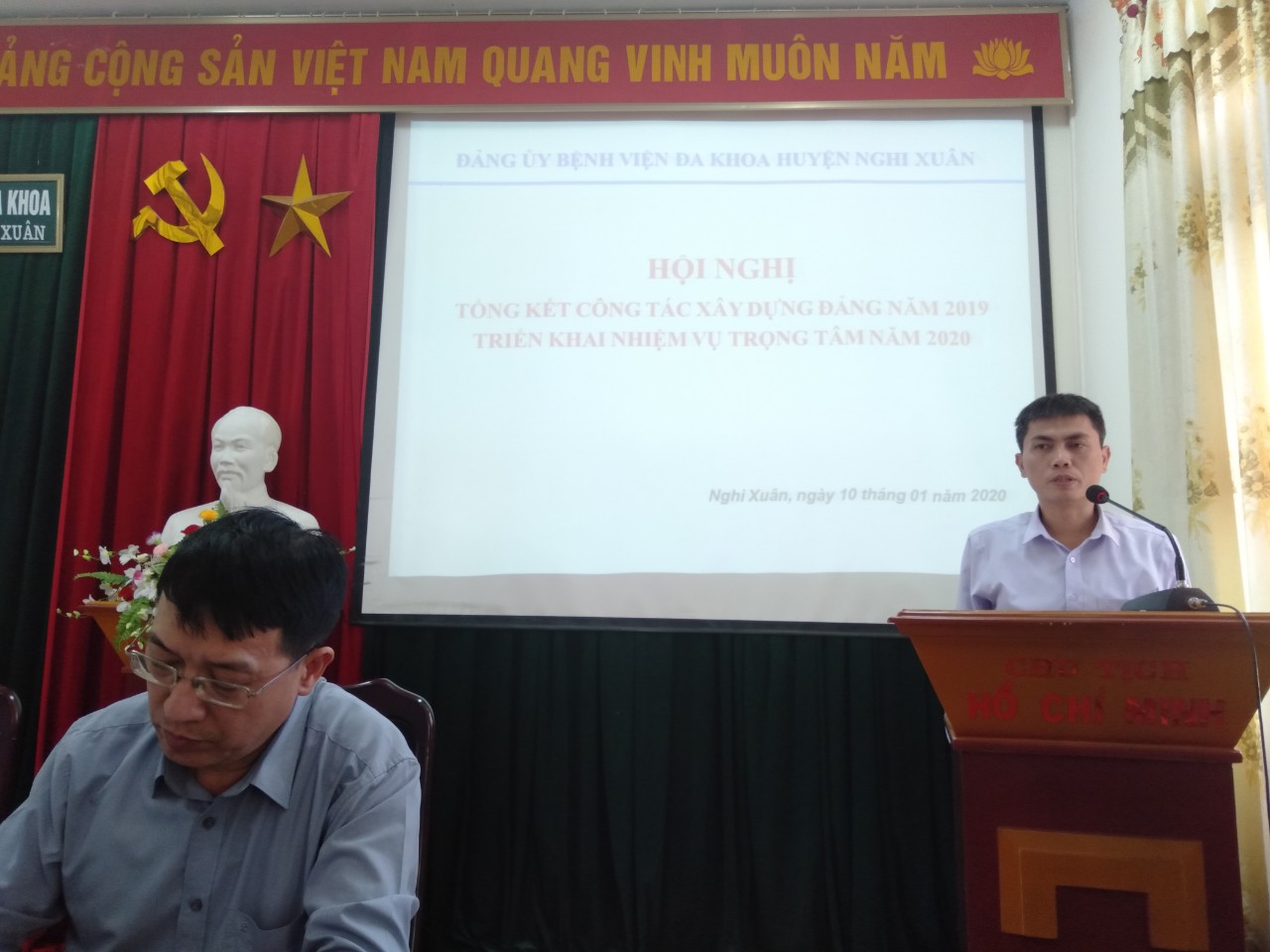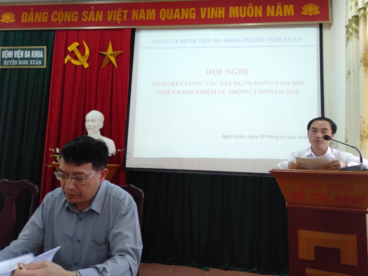 Mở đầu hội nghị, BS.CKI Lê Viết Hùng Ủy viên BCH Đảng bộ, Phó Giám đốc – Phụ trách bệnh viện đọc bản báo cáo tổng kết công tác Đảng năm 2019 và Phương hướng nhiệm vụ trong tâm năm 2020