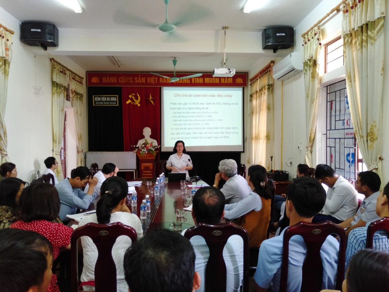 Kết thúc buổi tập huấn, Bác sỹ Lê Viết Hùng, Phó giám đốc – Phụ trách Bệnh viện đã gửi lời cảm ơn chân thành đến bác sỹ Hà bệnh viện Nhi Trung ương đã phối hợp với Bệnh viện Đa khoa Nghi xuân để tổ chức thành công buổi tập huấn và mong muốn hỗ trợ chuyên môn kỷ thuật một cách tối đa và thuận lợi nhất có thể cho bệnh viện, buổi tập huấn đã đưa đến những kiến thức rất mới, rất bổ ích nhằm góp phần nâng cao trình độ chuyên môn cho các bác sĩ tại bênh viện và trạm y tế xã trong việc cập nhật, chẩn đoán, điều trị bệnh tiêu chảy cấp ở trẻ em, góp phần nâng cao sức khỏe cho nhân dân huyện nhà.