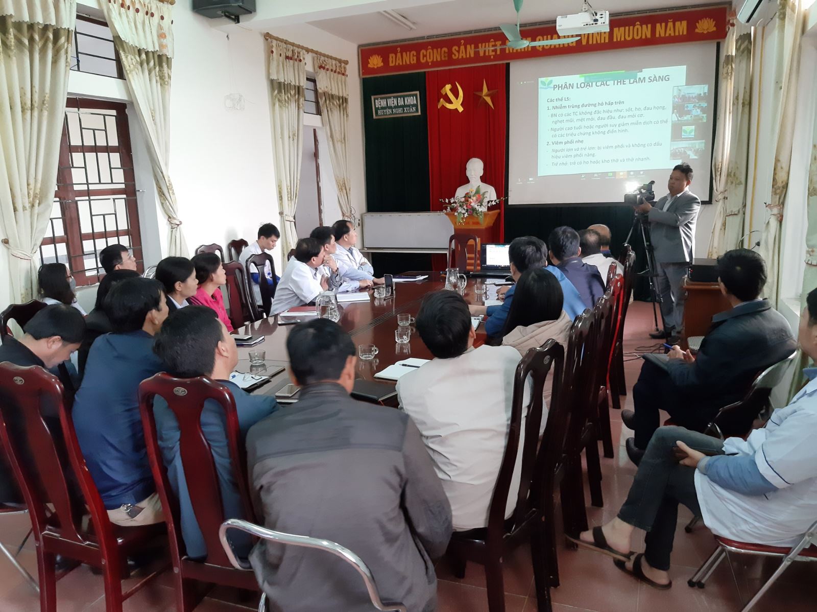 Tham dự buổi tập huấn tại bệnh viện có Bác sĩ CKI Lê Viết Hùng, Phó Giám đốc – Phụ trách bệnh viện, cùng các nhân viên y tế trong Bệnh viện và 17 trạm y tế xã, thị trấn.