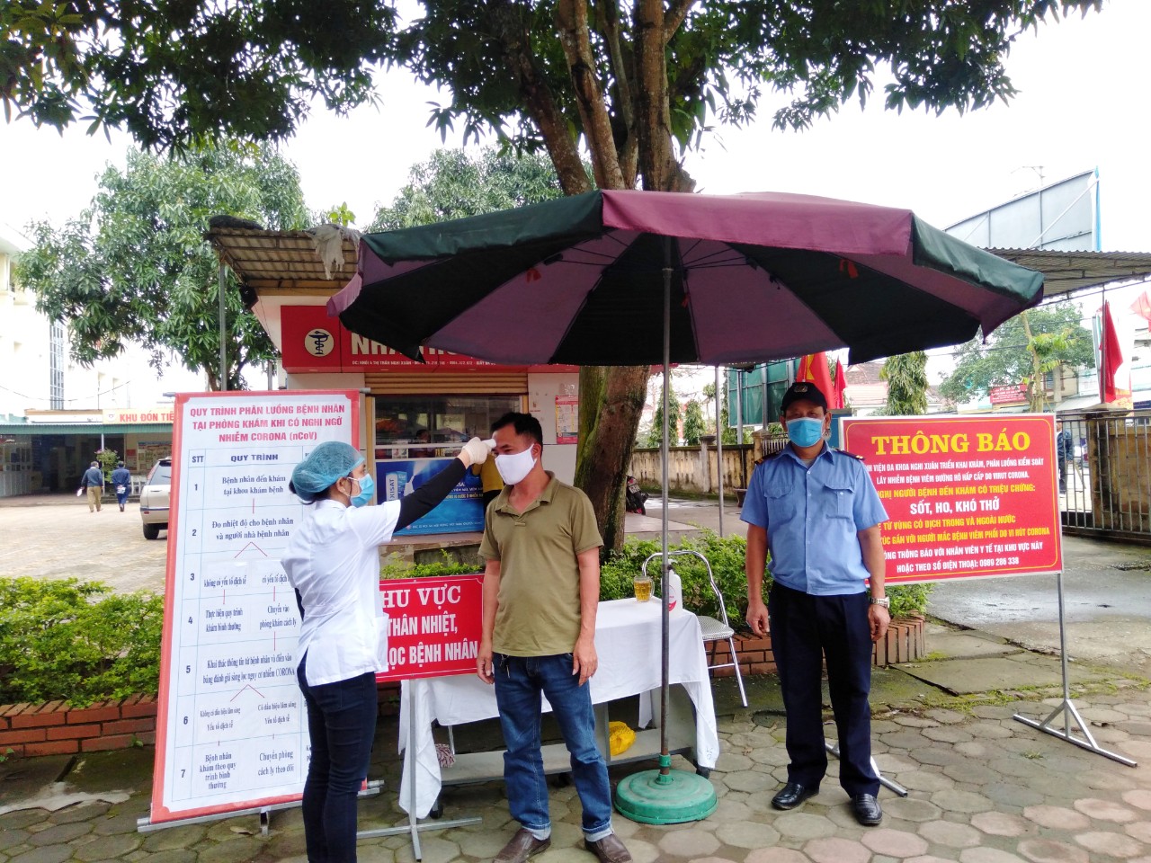 Bệnh viện cần thiết lập quy trình đón tiếp, sàng lọc, 100% người dân (người bệnh, người nhà của người bệnh, người thăm bệnh) đều được đo thân nhiệt, thực hiện sàng lọc ngay tại cổng vào của bệnh viện về yếu tố dịch tễ khi đến bệnh viện. Người bệnh nào có yếu tố dịch tễ sẽ được sàng lọc, trường hợp nào nghi ngờ, người bệnh sẽ được nhân viên y tế hướng dẫn đi lối riêng đến phòng khám cách ly để được khám kỹ lại. Nếu nằm trong số trường hợp nghi ngờ sẽ được tư vấn các giải pháp phù hợp với tình trạng người bệnh, nhắc nhở người bệnh đeo khẩu trang hoặc cung cấp khẩu trang cho người bệnh nếu người bệnh không có. Tất cả các bàn khám sàng điều có nước sát khuẩn tay nhanh cho người đến khám.
