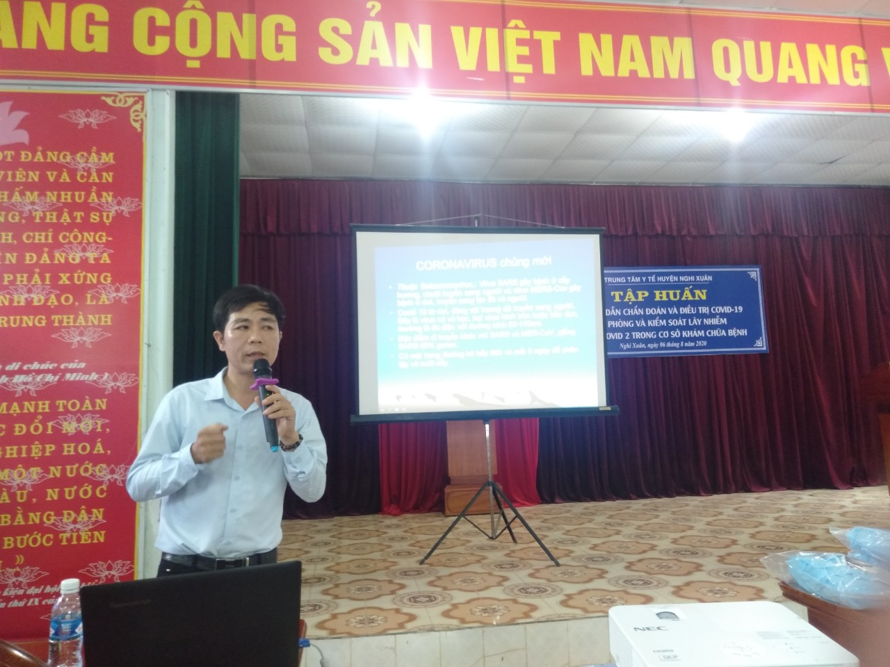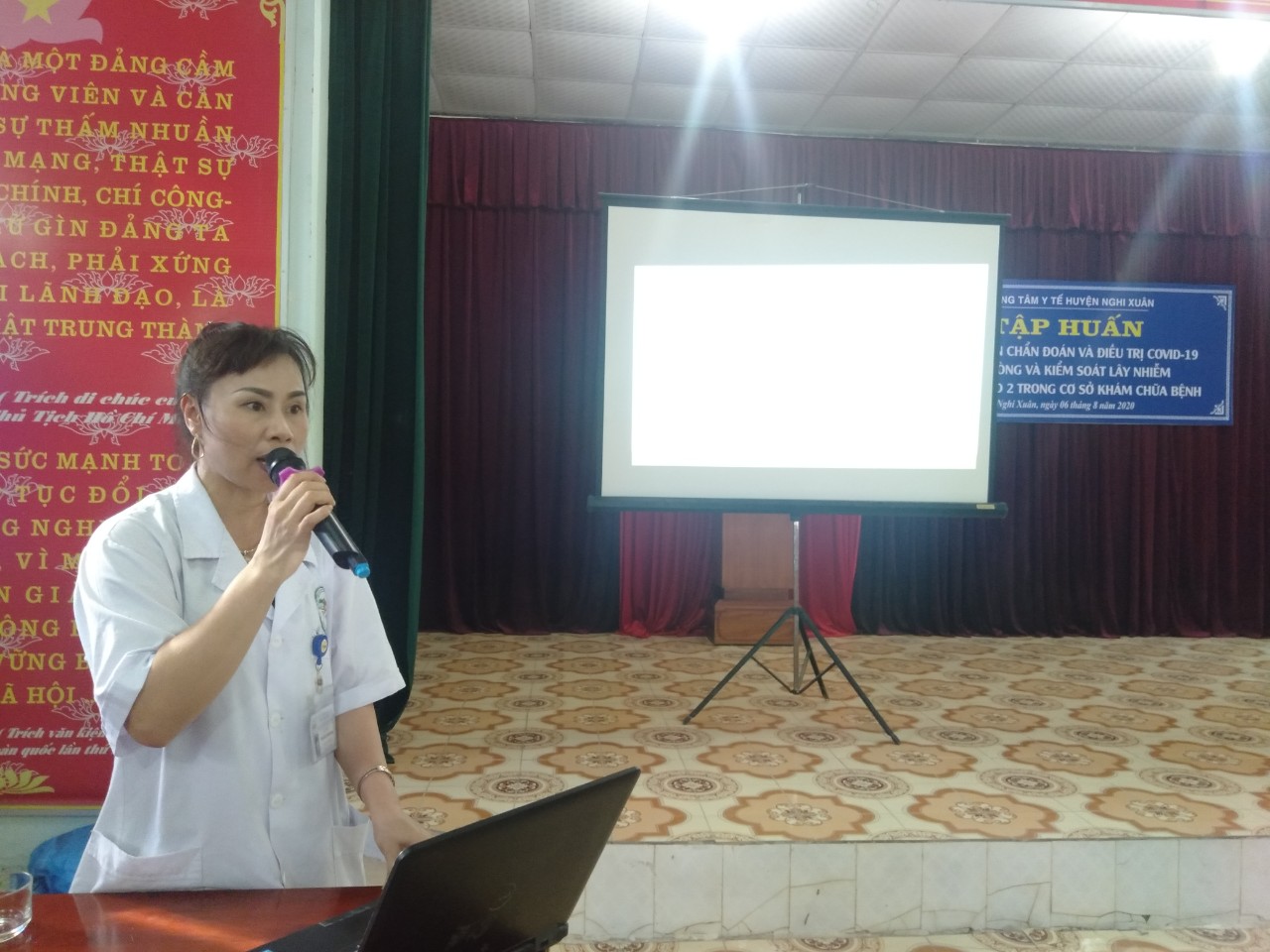 Tham gia buổi tập huấn có các đồng chí trong Ban giám đốc Trung tâm, bác sỹ các khoa phòng, trưởng các Trạm y tế và cán bộ dự phòng trong các khu cách ly tập trung các xã thị trấn, toàn thể cán bộ viên chức và người lao động của Trung tâm Y tế huyện Nghi Xuân.