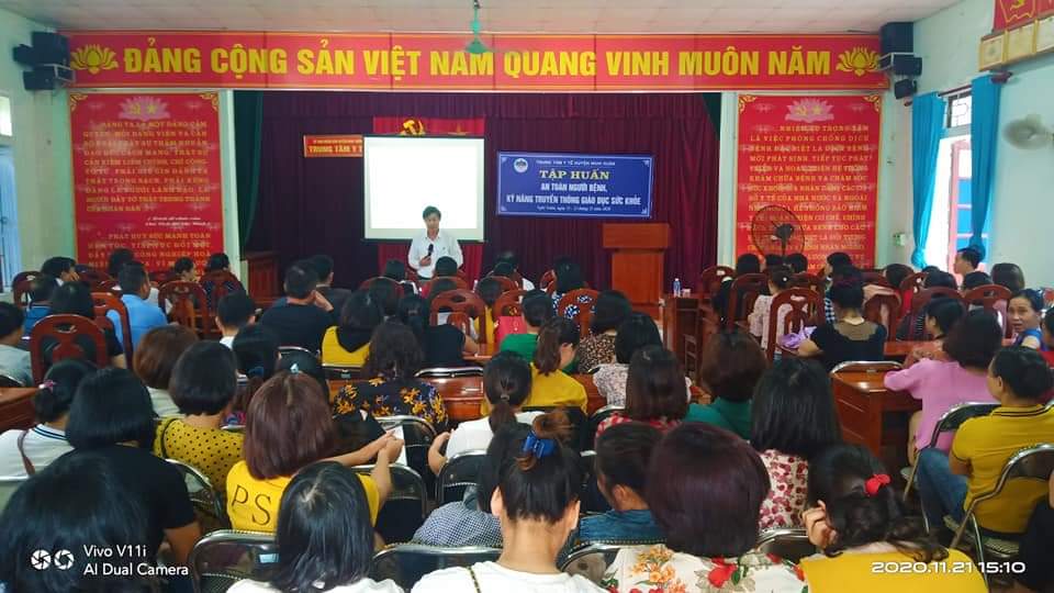 Trung Tâm y tế tổ chức lớp tập huấn "AN TOÀN NGƯỜI BỆNH và KỶ NĂNG TRUYỀN THÔNG GDSK" cho đội ngủ cán bộ công nhân viên chức từ Trung Tâm đến cán bộ y tế Cơ Sở gần 200 cán bộ tham gia lớp tập huấn.