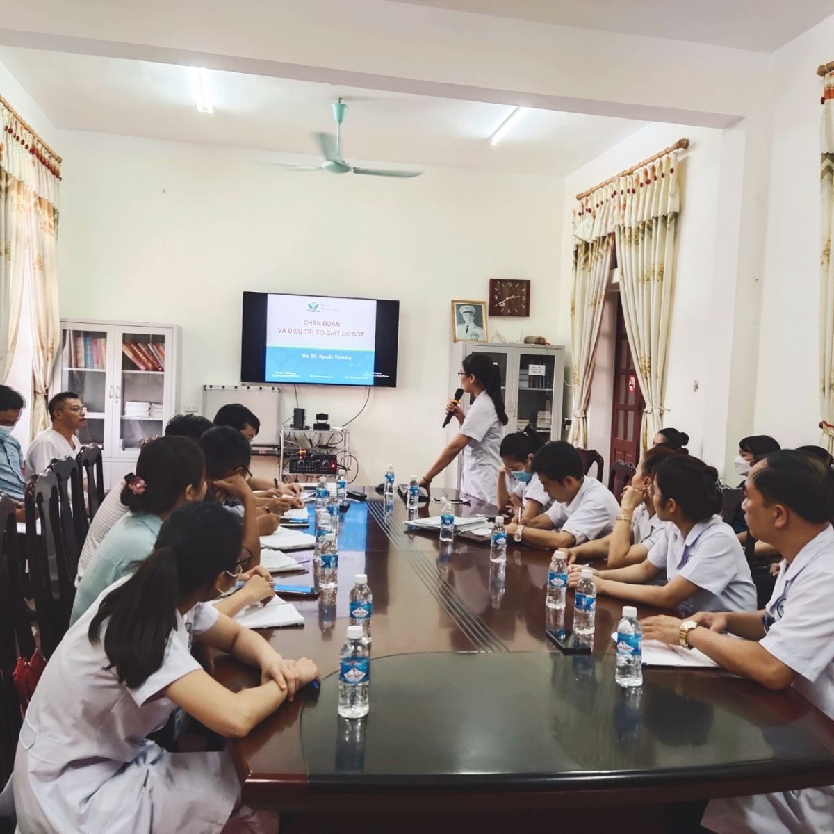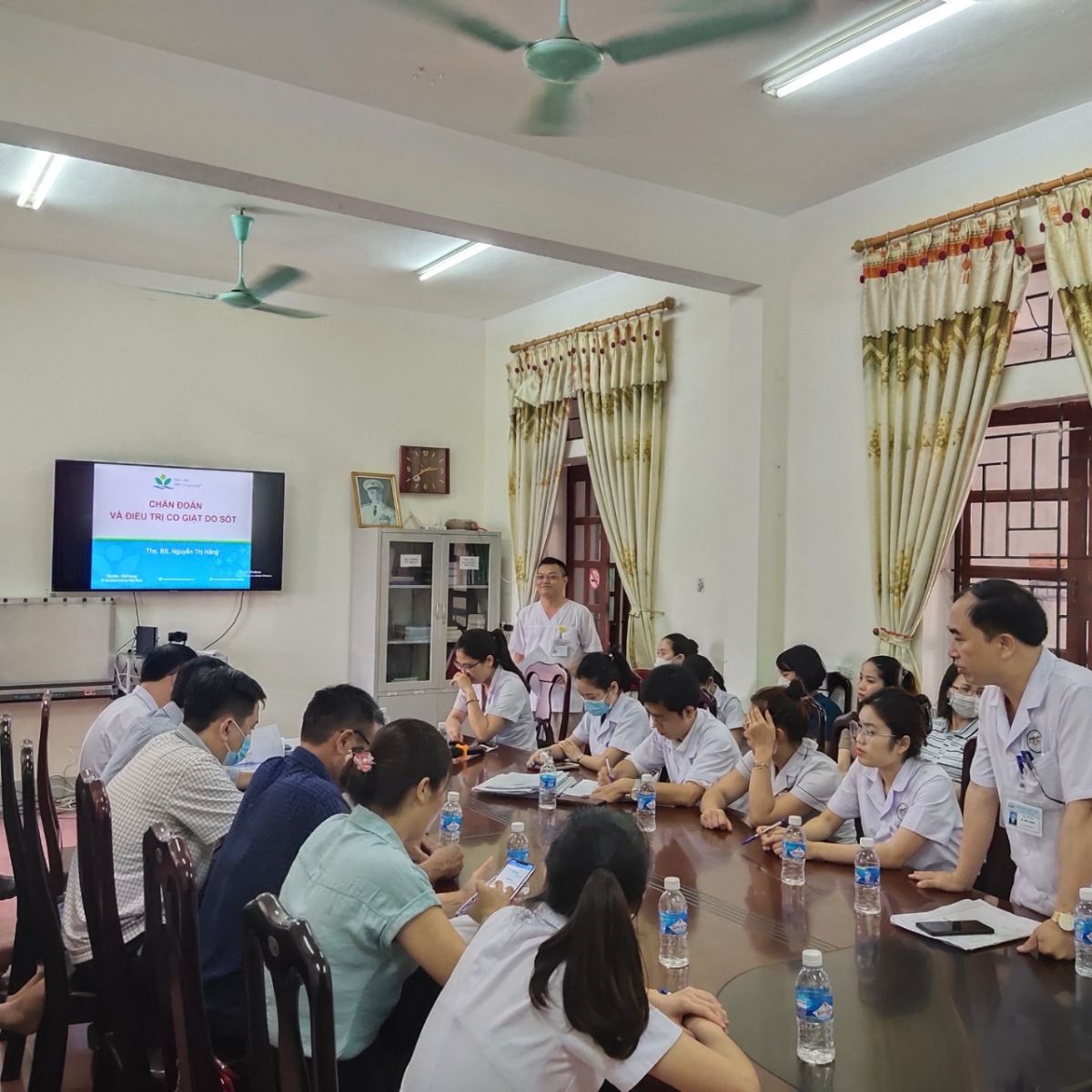 Tại buổi tập huấn, các y, bác sỹ đã được Ths.Bs Nguyễn Thị Hằng Bệnh viện Nhi Trung ương trao đổi các nội dung: Dịch tễ học, các yếu tố nguy cơ, triệu chứng lâm sàng, cận lâm sàng, chẩn đoán, tiên lượng và điều trị co giật do sốt.