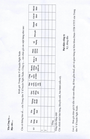 | TRUNG TÂM Y TẾ HUYỆN NGHI XUÂN MỜI CHÀO GIÁ HÓA CHẤT, SINH PHẨM LẦN 2