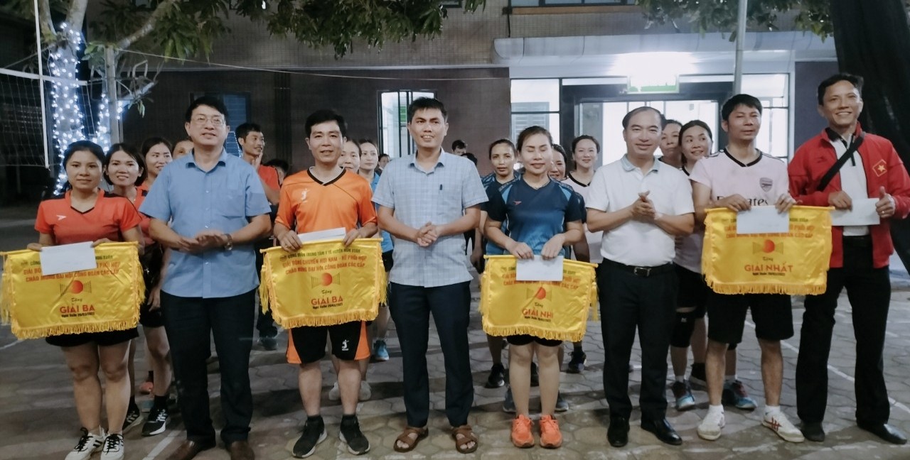 Tham gia giải bóng chuyền hơi có 7 đội: Cụm 1 gồm Trạm Y tế các xã (Cương Gián, Cổ Đạm, Xuân Liên, Xuân Thành, Xuân Mỹ); Cụm 2 gồm Trạm Y tế các xã ( Xuân Hội, Đan Trường, Xuân Phổ, Xuân Hải, Xuân Yên, TT Tiên Điền); Cụm 3 gồm Trạm Y tế các xã (Xuân Lam, Xuân Hồng, Xuân Lĩnh, Xuân Viên, Xuân An, Xuân Giang); Khối Hậu cần; Khối Nội; Khối Ngoại và Dự phòng.