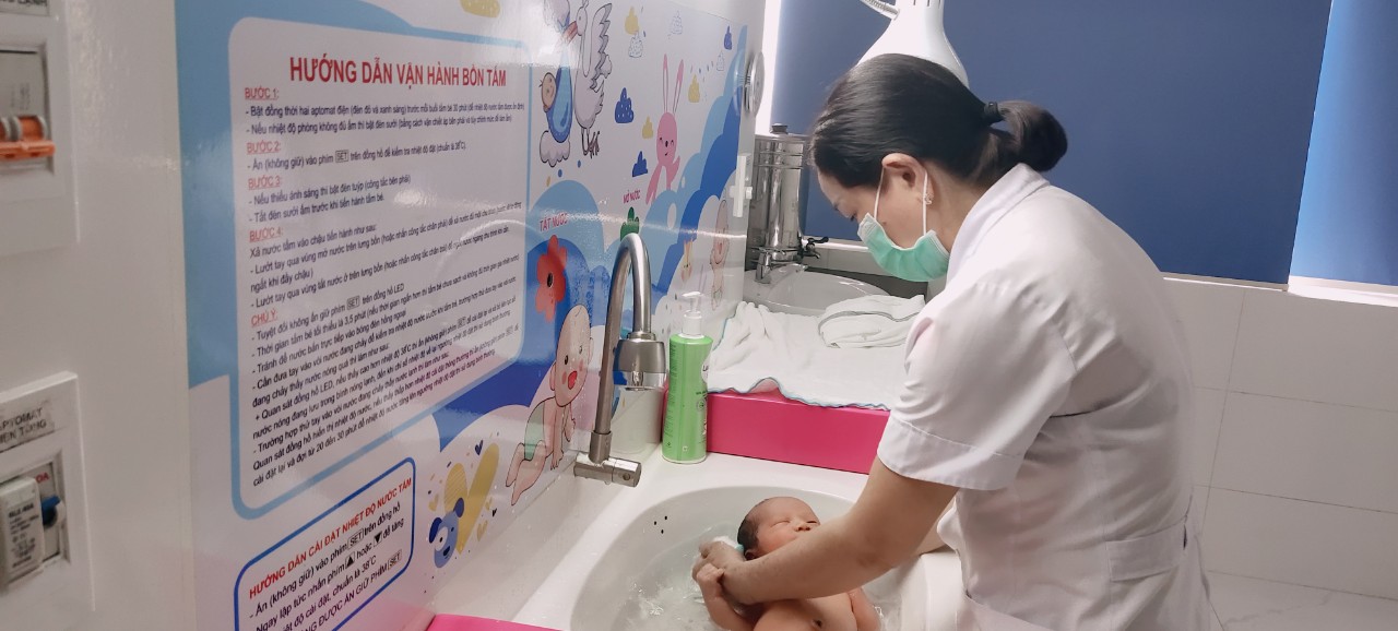 Với không gian sạch sẽ thoáng mát, công trình vệ sinh khép kín, có điều hòa và đặc biệt là đội ngũ y bác sỹ đầy y đức, trách nhiệm. Các bé sinh ra được chăm sóc đặc biệt: Được tắm mát, chăm sóc rốn hằng ngày, tiêm phòng sớm các vắc xin phòng bệnh viêm gan B, Lao sơ sinh; bé được chiếu đèn nếu có vàng da, lấy mẫu máu gót chân sàng lọc các bệnh rối loạn nội tiết, chuyển hoá.