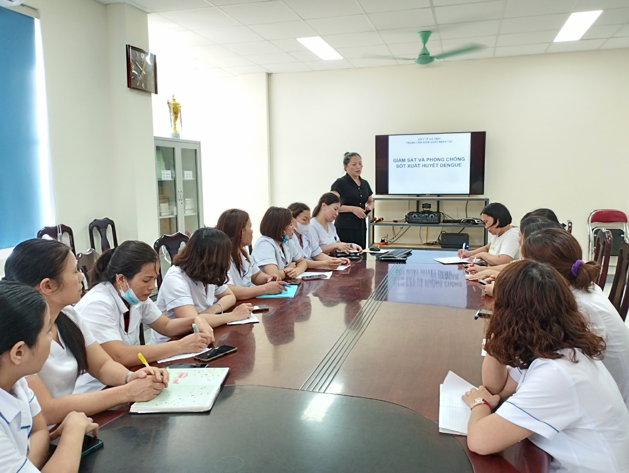 Tại buổi tập huấn, các học viên được Bs. Phạm Thị Hồng Lam, Phó Giám đốc Trung tâm truyền đạt những nội dung về: Đặc điểm bệnh sốt xuất huyết Dengue, các biện pháp phòng chống sốt xuất huyết tại cộng đồng, cách giám sát chủ động phát hiện sớm ổ dịch và nguy cơ bùng phát dịch…