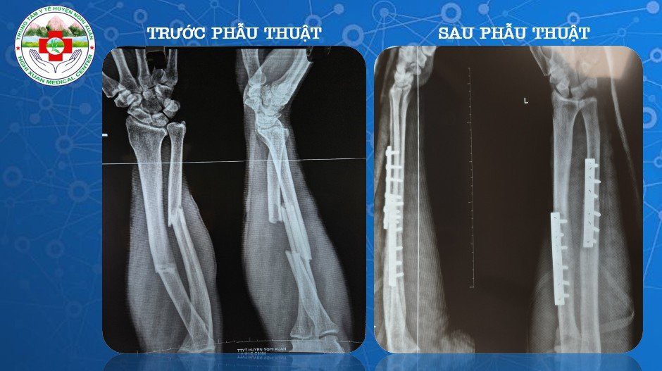 Qua thăm khám lâm sàng kết hợp với các phương pháp chẩn đoán hình ảnh, bệnh nhân được chẩn đoán: Gãy phức tạp 1/3 giữa 2 xương cẳng tay trái di lệch/ Gãy xương sườn. Các bác sĩ khoa Ngoại Tổng hợp đã nhanh chóng cấp cứu tích cực cho bệnh nhân cũng như hồi sức dự phòng chống sốc chấn thương, tiêm truyền thuốc giảm đau, hội chẩn và hoàn thiện xét nghiệm để tiến hành phẫu thuật kết hợp xương bệnh nhân một cách nhanh nhất. Sau 1 tiếng, ê kíp gây mê cùng các bác sĩ, phẫu thuật viên đã phẫu thuật thành công cho bệnh nhân. Hiện sức khỏe của bệnh nhân đã ổn định và được xuất viện.