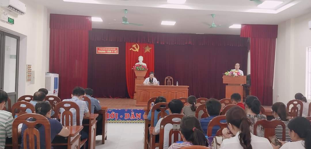 Chủ trì Hội nghị có Bs Lê Viết Hùng, Giám đốc, Bs Phạm Thị Hồng Lam, Phó Giám đốc; cùng sự tham gia của các viên chức Khoa YTCC- DD- ATVSTP, Khoa KSBT - HIV/AIDS; Phòng Dân số - TT; Trưởng trạm và NHS 17 xã, thị trấn.