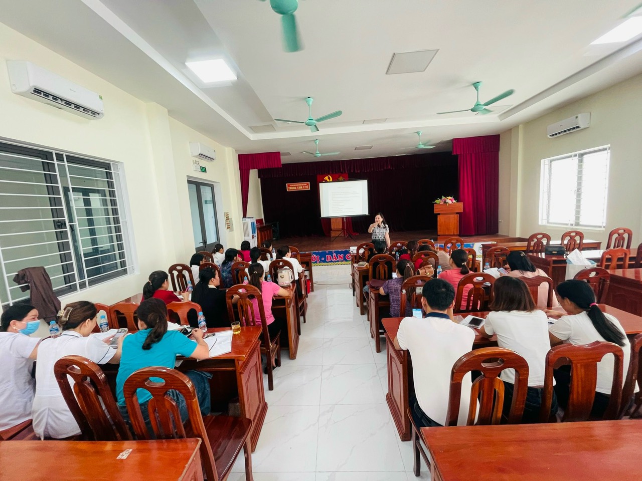 Bác sỹ CKI Trần Thị Huệ Trưởng khoa CSSKSS - TT Kiểm soát bệnh tật tỉnh truyền đạt nội dung bài giảng