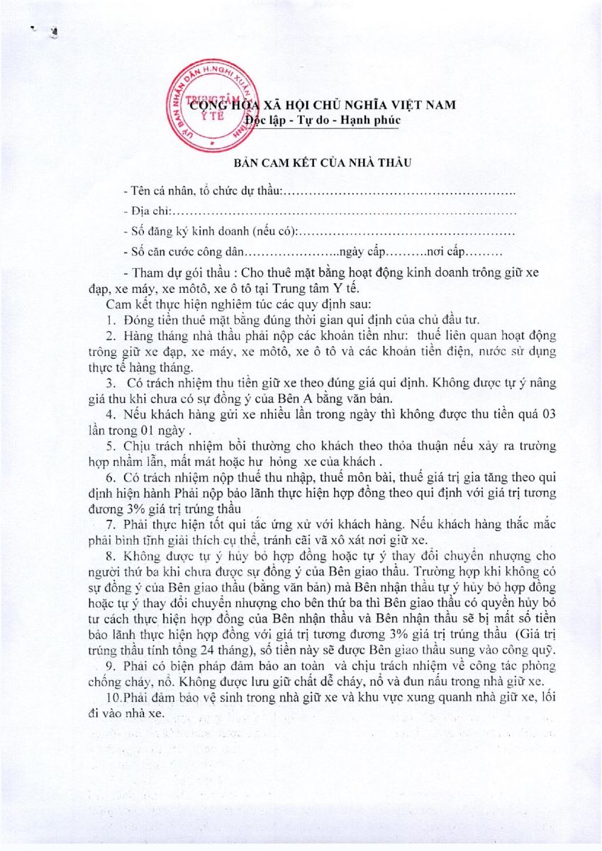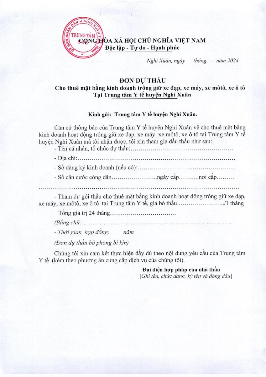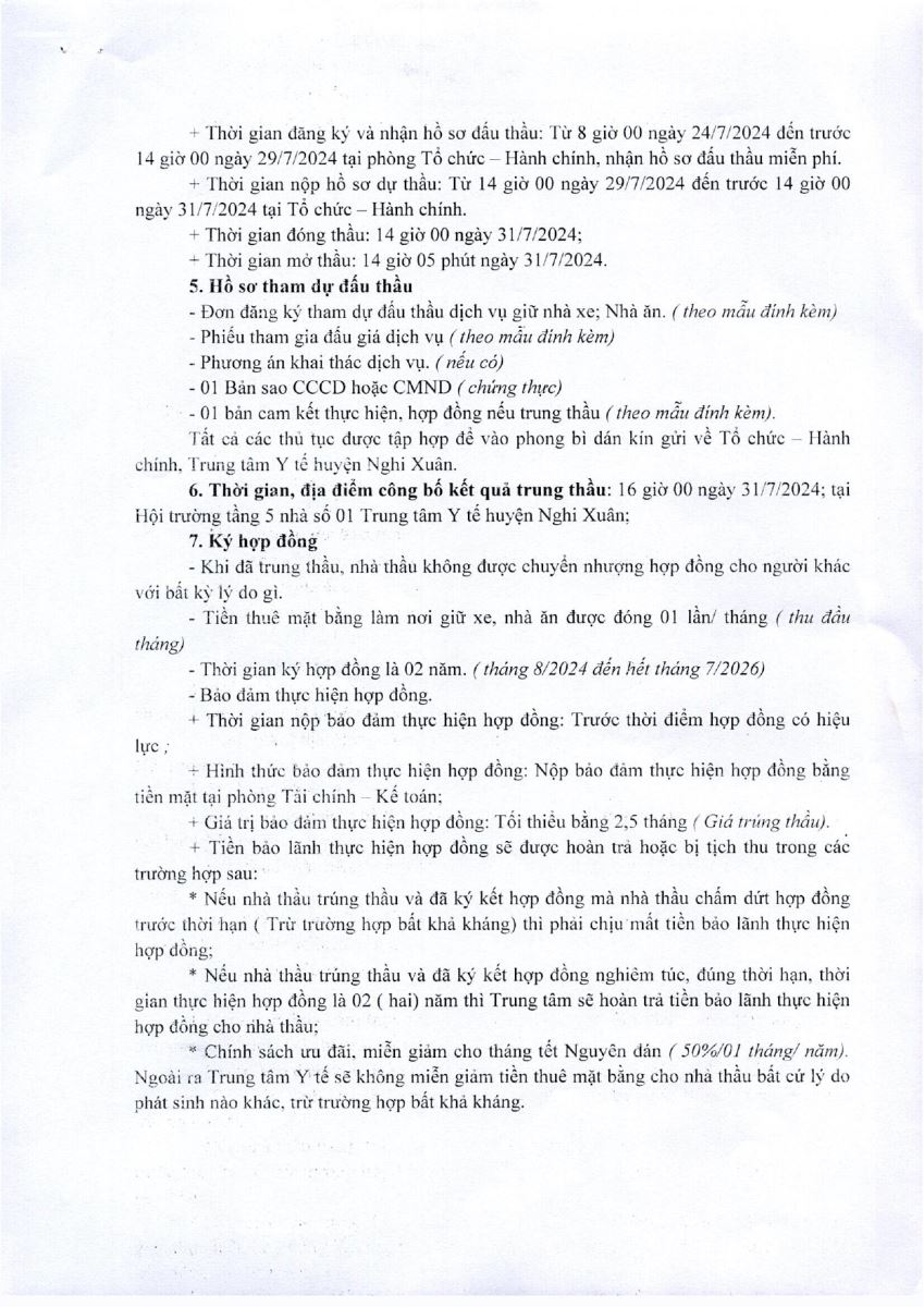 Tổ chức đấu thầu căng tin, nhà giữ xe đạp, xe máy tại Trung tâm y tế huyện Nghi Xuân năm 2024-2026