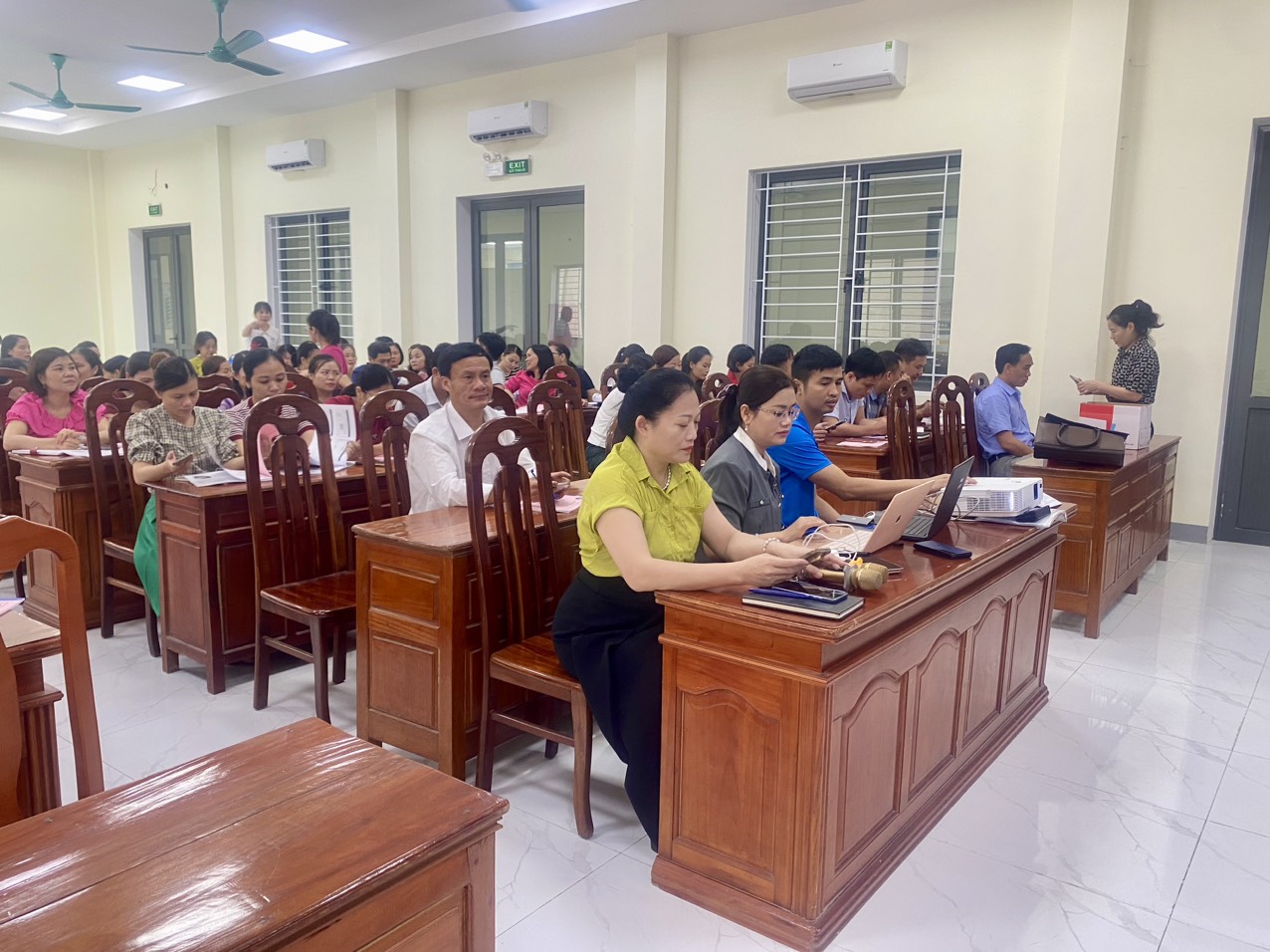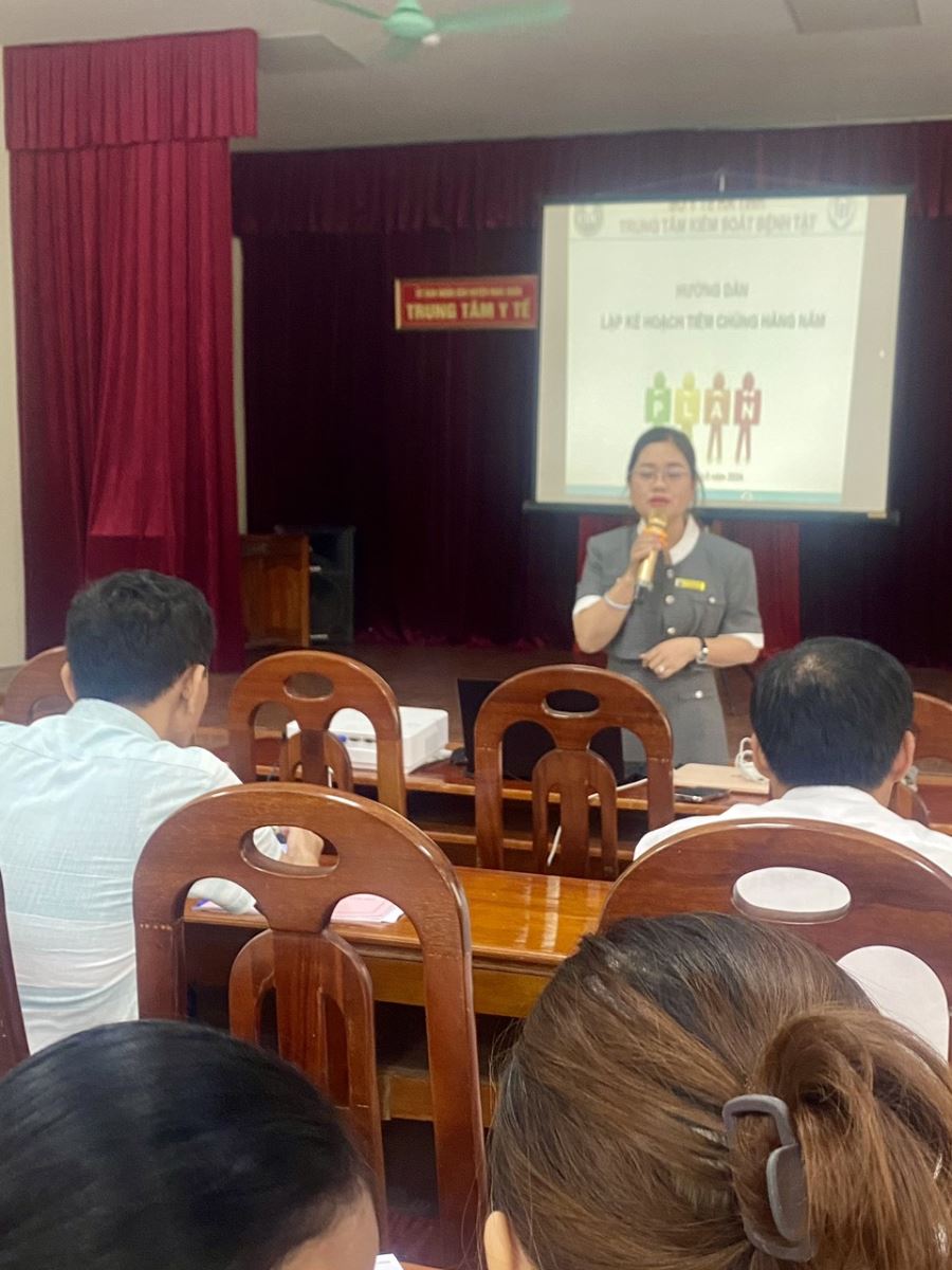 Tham dự lớp tập huấn có cán bộ Trung tâm Kiểm soát Bệnh tật tỉnh Hà Tĩnh; Bs. Phạm Thị Hồng Lam, Phó Giám đốc và cán bộ Trung tâm Y tế huyện làm công tác giám sát, chỉ đạo, thực hiện công tác tiêm chủng; cán bộ trạm y tế 17 xã, thị trấn, các trung tâm tiêm chủng dịch vụ trên địa bàn.