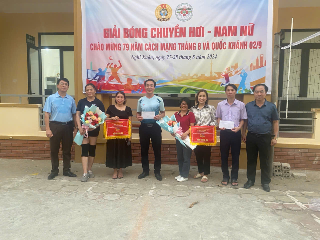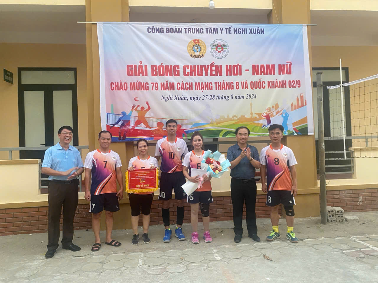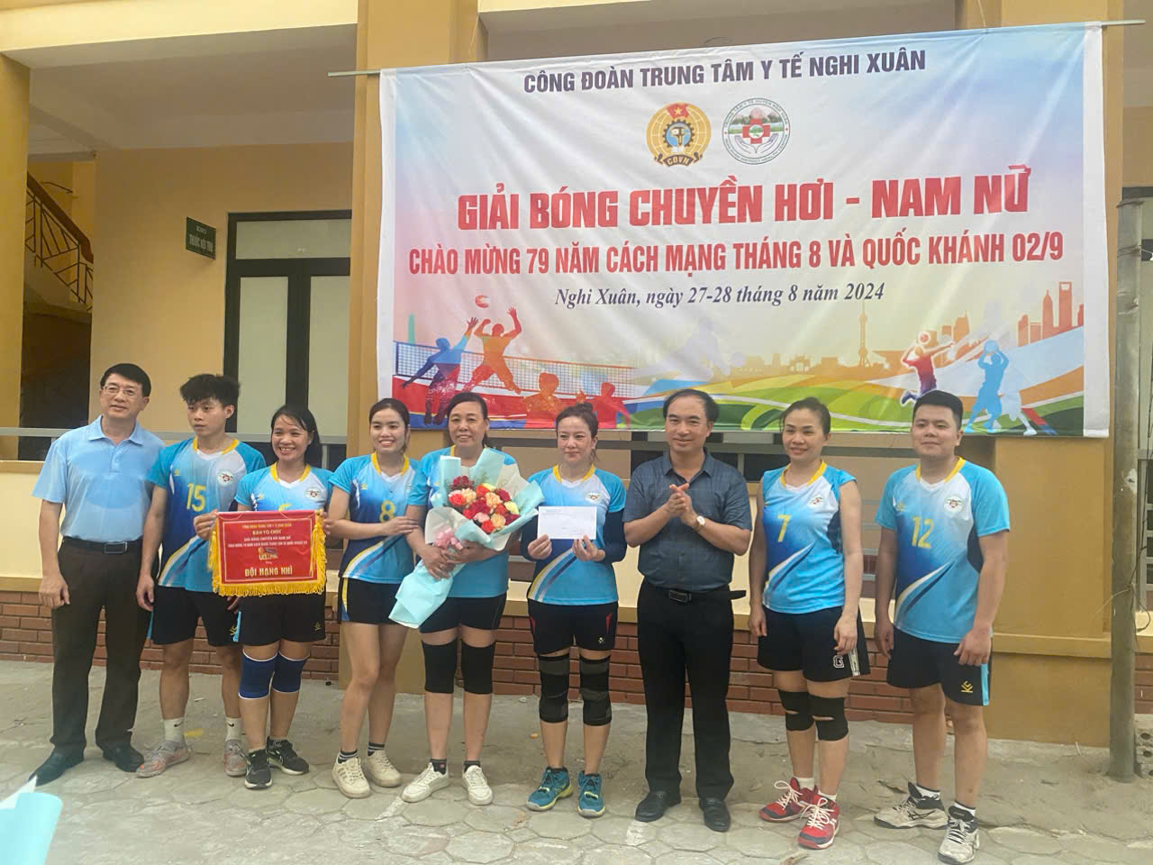 Tham gia giải bóng chuyền hơi có 7 đội: Cụm 1 gồm Trạm Y tế các xã (Cương Gián, Cổ Đạm, Xuân Liên, Xuân Thành, Xuân Mỹ); Cụm 2 gồm Trạm Y tế các xã ( Xuân Hội, Đan Trường, Xuân Phổ, Xuân Hải, Xuân Yên, TT Tiên Điền); Cụm 3 gồm Trạm Y tế các xã (Xuân Lam, Xuân Hồng, Xuân Lĩnh, Xuân Viên, Xuân An, Xuân Giang); Khối Hậu cần; Khối Nội; Khối Ngoại – Sản và Dự phòng – Dân số.